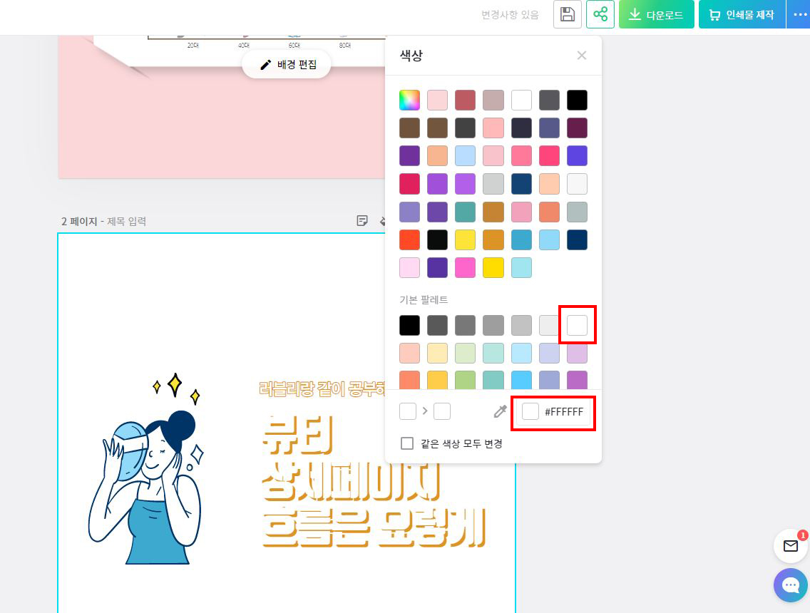 ํ์์ ์ ํํด์ฃผ์ธ์. ์์๊ฐ์ #FFFFFF๋ก ๋์ต๋๋ค.