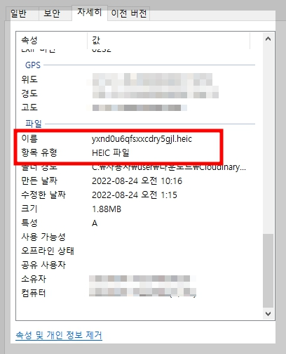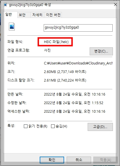 ์ฌ์ง ์ด๋ฏธ์ง ์์ฑ์ ํ์ธํด๋ดค์ต๋๋ค. ํ์ฅ์๊ฐ heic๋ก ๋์ด์๋ค์.