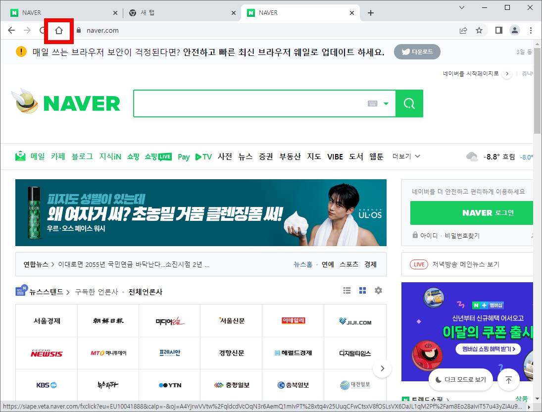 (μ°Έκ³ : μνμ λ³κ²½νμ§λ λͺ»νκ³ ν¬λ‘¬ 첫νλ©΄μΌλ‘ λμ΅λλ€.)
