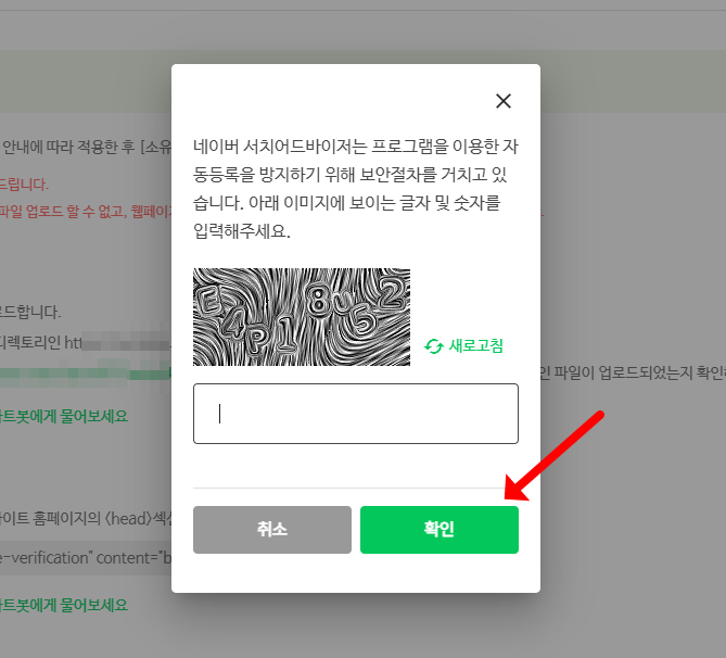 9) ๋ณด์๋ฌธ์๋ฅผ ์ ๋ ฅํ๊ณ ํ์ธ์ ๋๋ฃจ๋ฉด ์ฌ์ดํธ๊ฐ ๋ค์ด๋ฒ์ ๋ฑ๋ก๋ฉ๋๋ค.