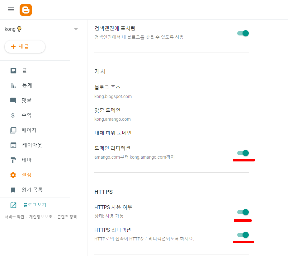 7. ๊ทธ๋ฆฌ๊ณ ๊ทธ ๋ฐ์ ์๋ [๋๋ฉ์ธ ๋ฆฌ๋๋ ์ ]์ ํ์ฑํํฉ๋๋ค. ๊ทธ ๋ฐ์ ์๋ HTTPS ์ฌ์ฉ ์ฌ๋ถ๋ ํ์ฑํํ์ฌ ๋ณด์์ ์์ผ๋ก ์ค์ ํฉ๋๋ค. HTTPS ๋ฆฌ๋๋ ์ ๋ ํ์ฑํํฉ๋๋ค.