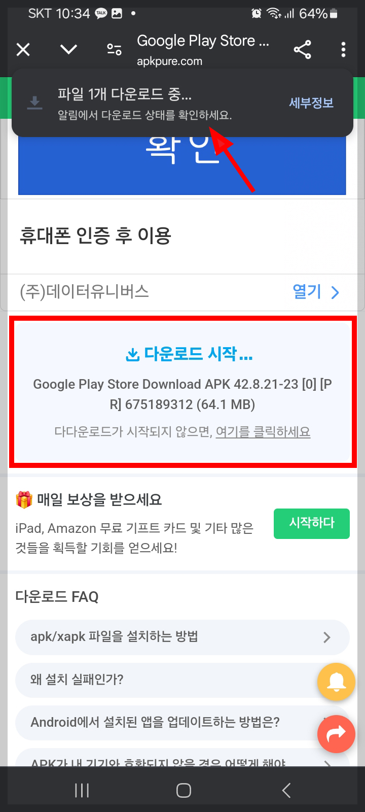 3) λ λ€λ₯Έ νμ΄μ§κ° λμ€λ©΄μ μλλ‘ λ€μ΄κ°λ©΄ 'λ€μ΄λ‘λ APK'λ₯Ό λλ¦ λλ€.