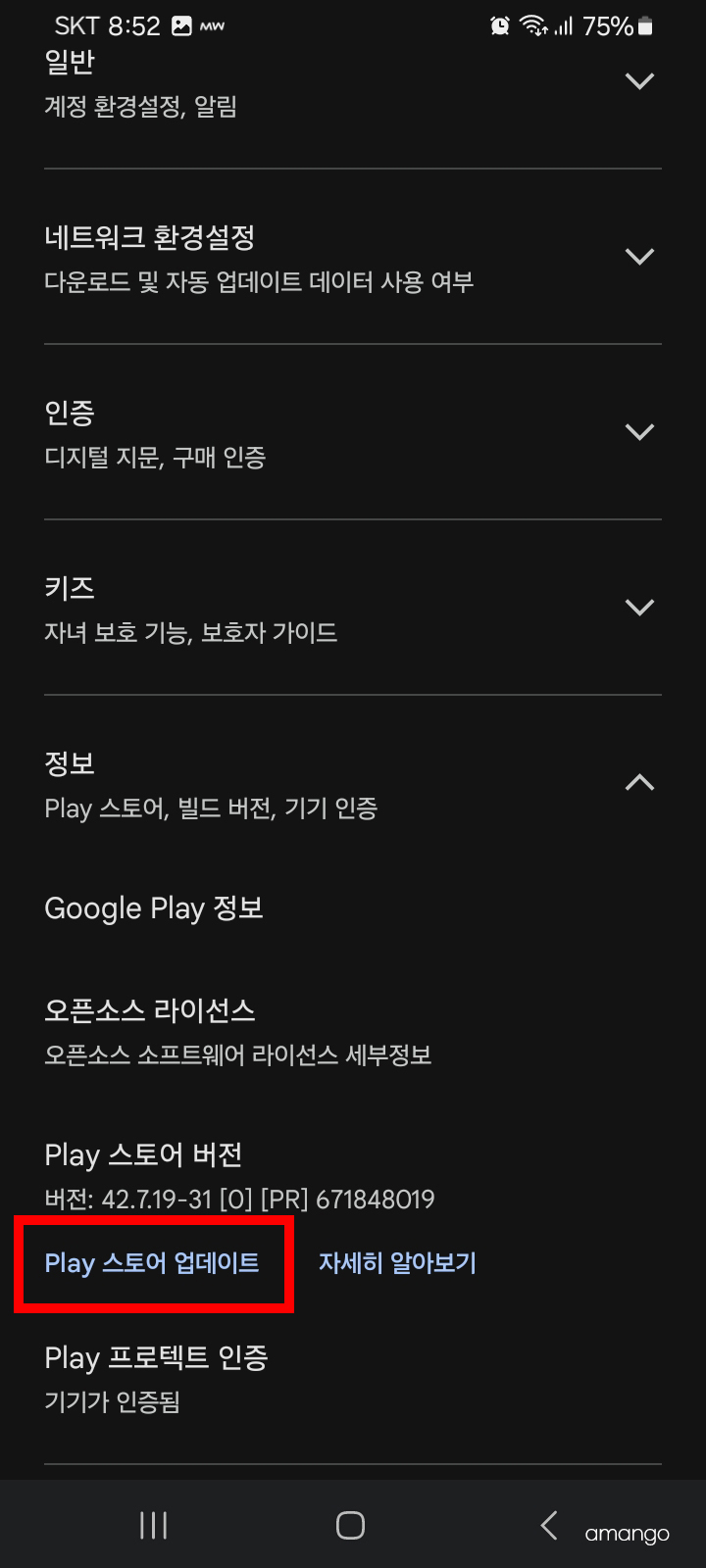 5) μλ νλ©΄μ²λΌ 'Play μ€ν μ΄ λ²μ ' νλͺ©μ 'Play μ€ν μ΄ μ λ°μ΄νΈ'λ₯Ό λλ¦ λλ€.