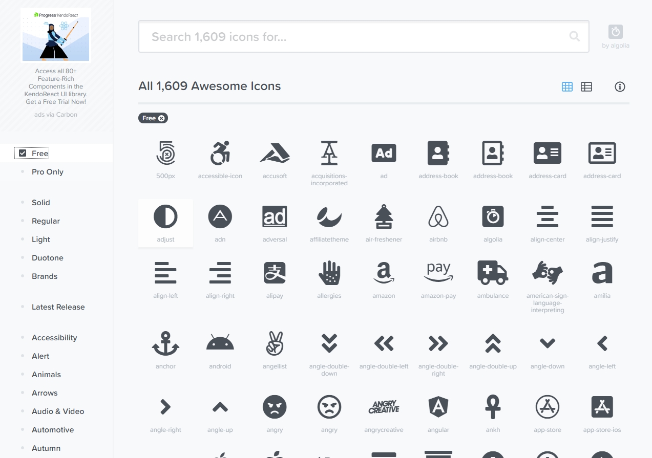 ์๋จ ๋ฉ๋ด์ Icons > Free๋ฅผ ํ์ธํ๋ฉด ๋ฌด๋ฃ๋ก ์ธ ์ ์์ ํฐํธ์์ด์ฝ๋ค์ ๋ณผ ์ ์์ต๋๋ค.