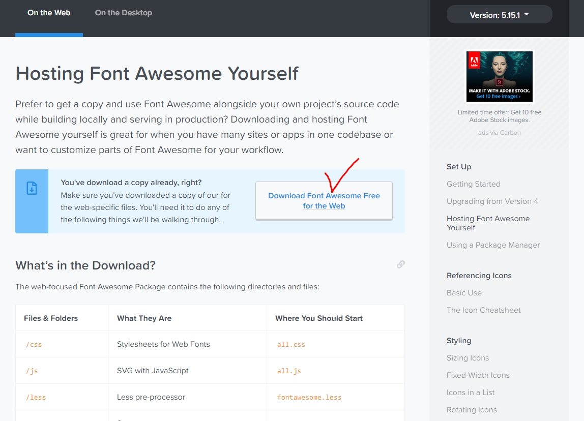 "Download Font Awesome Free for the Web"์ ํด๋ฆญํด์