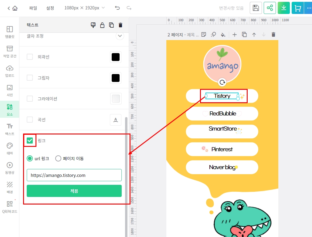 ๊ธ์๋ฅผ ์ ํํ์๊ณ ์ผ์ชฝ ํจ๋์์ ๋งํฌ๋ฅผ ์ฒดํฌํ๋ฉด ๋งํฌํ ์ฃผ์์ ๋ ฅ์ฐฝ์ด ๋์ต๋๋ค.
