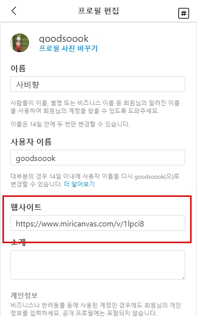 ์ธ์คํ๊ทธ๋จ ํ๋กํ ๋งํฌ ๋ฏธ๋ฆฌ์บ๋ฒ์ค๋ก ๋ง๋ค๊ธฐ