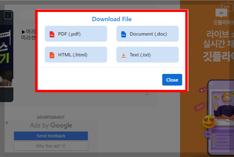 Pdf, Doc, Html, Text ์ด ์ค์์ ์ ํํ์ธ์.